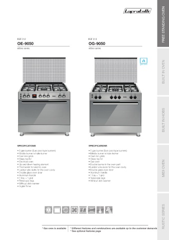 * Gas oven is available * Different features and combinations are available up to the customer demands