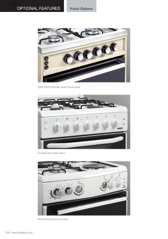 OPTIONAL FEATURES Panel Options SEMI-PROFESSIONAL panel (Corner panel) ELITLINE panel (Plain panel) HIGHLINE panel (Curved panel) 134 www.lofratelli.com