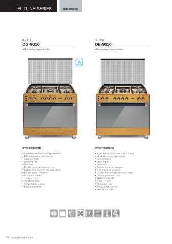 • Double glass oven door • Ladder wire racks for the oven cavity