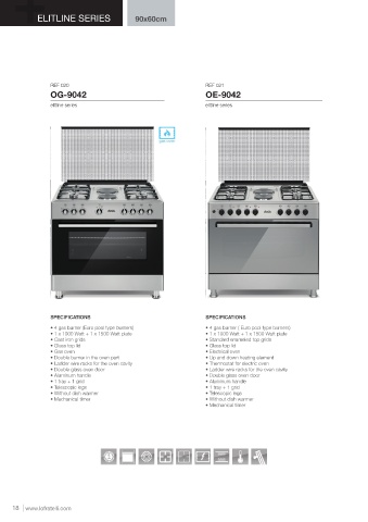 • Double glass oven door • Ladder wire racks for the oven cavity