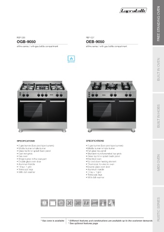 * Gas oven is available * Different features and combinations are available up to the customer demands