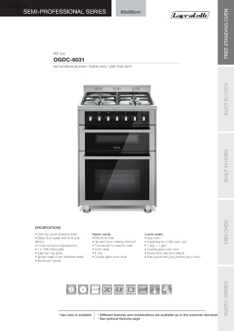 • Glass front panel with inox side • Electrical oven • Gas oven