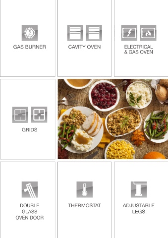 GAS BURNER CAVITY OVEN ELECTRICAL & GAS OVEN GRIDS DOUBLE THERMOSTAT ADJUSTABLE GLASS LEGS OVEN DOOR