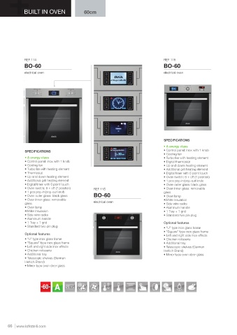 • Oven outer glass: black glass BO-60 • Oven lamp