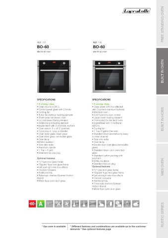 • Oven volume is 64 Lt. • Glass panel with inox effected