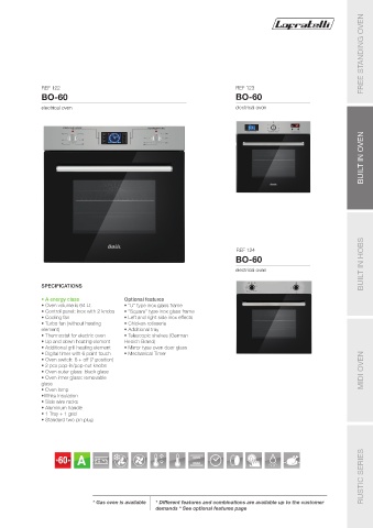• Oven volume is 64 Lt. • “U” type inox glass frame