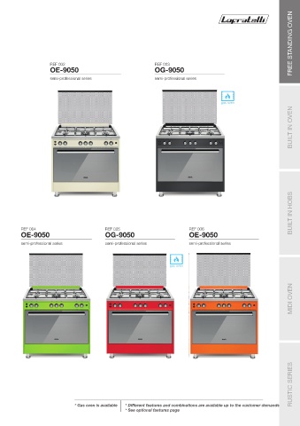 * Gas oven is available * Different features and combinations are available up to the customer demands