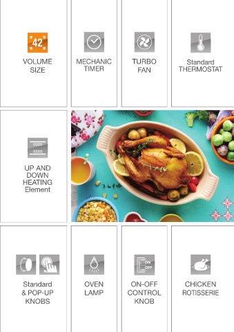 42 VOLUME MECHANIC TURBO Standard SIZE TIMER FAN THERMOSTAT UP AND DOWN HEATING Element Standard OVEN ON-OFF CHICKEN & POP-UP LAMP CONTROL ROTISSERIE KNOBS KNOB
